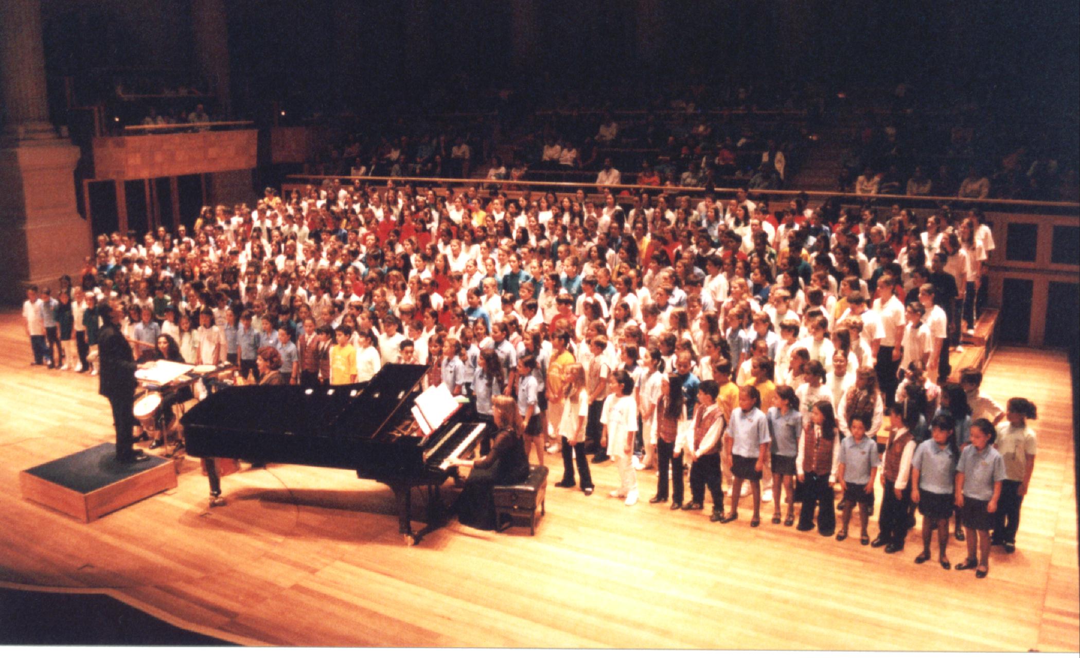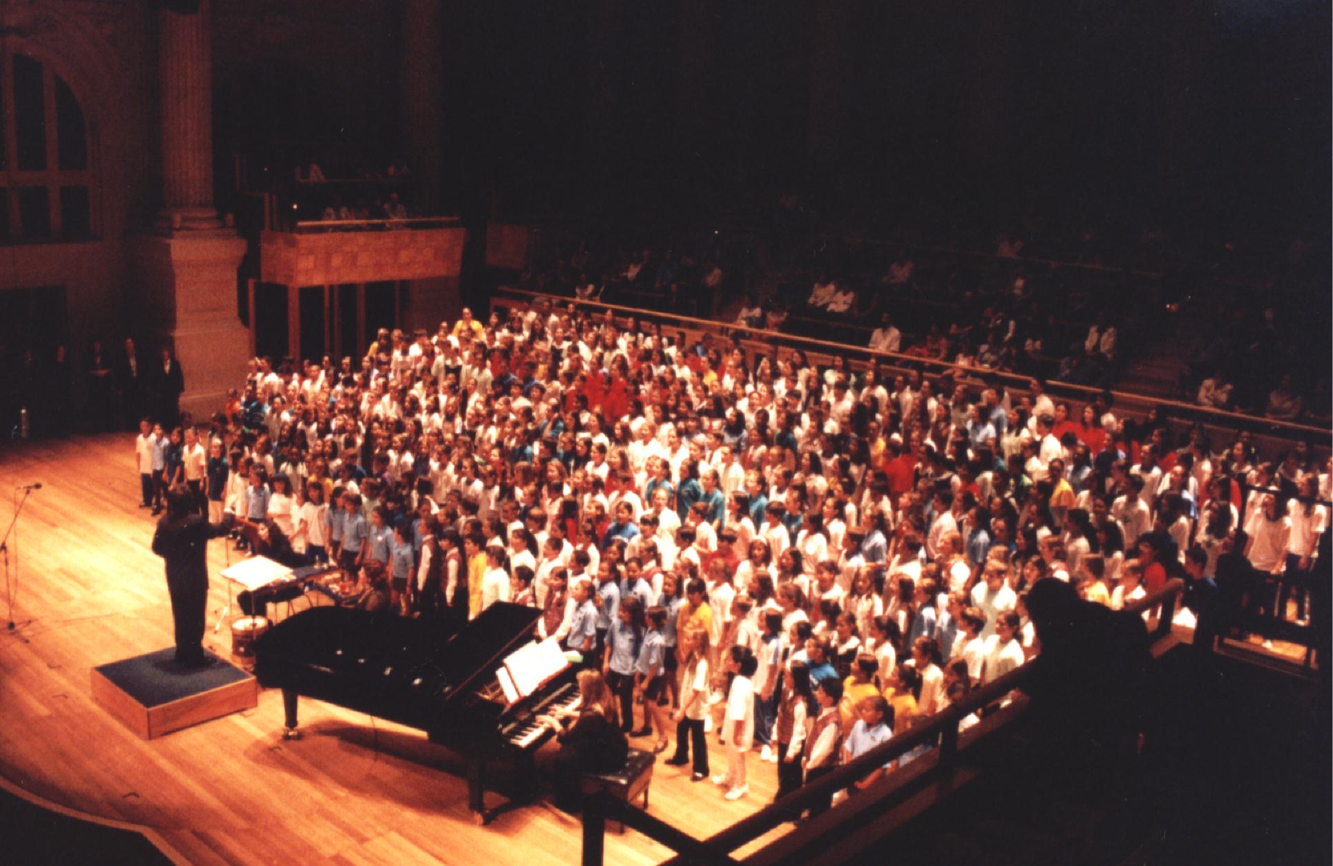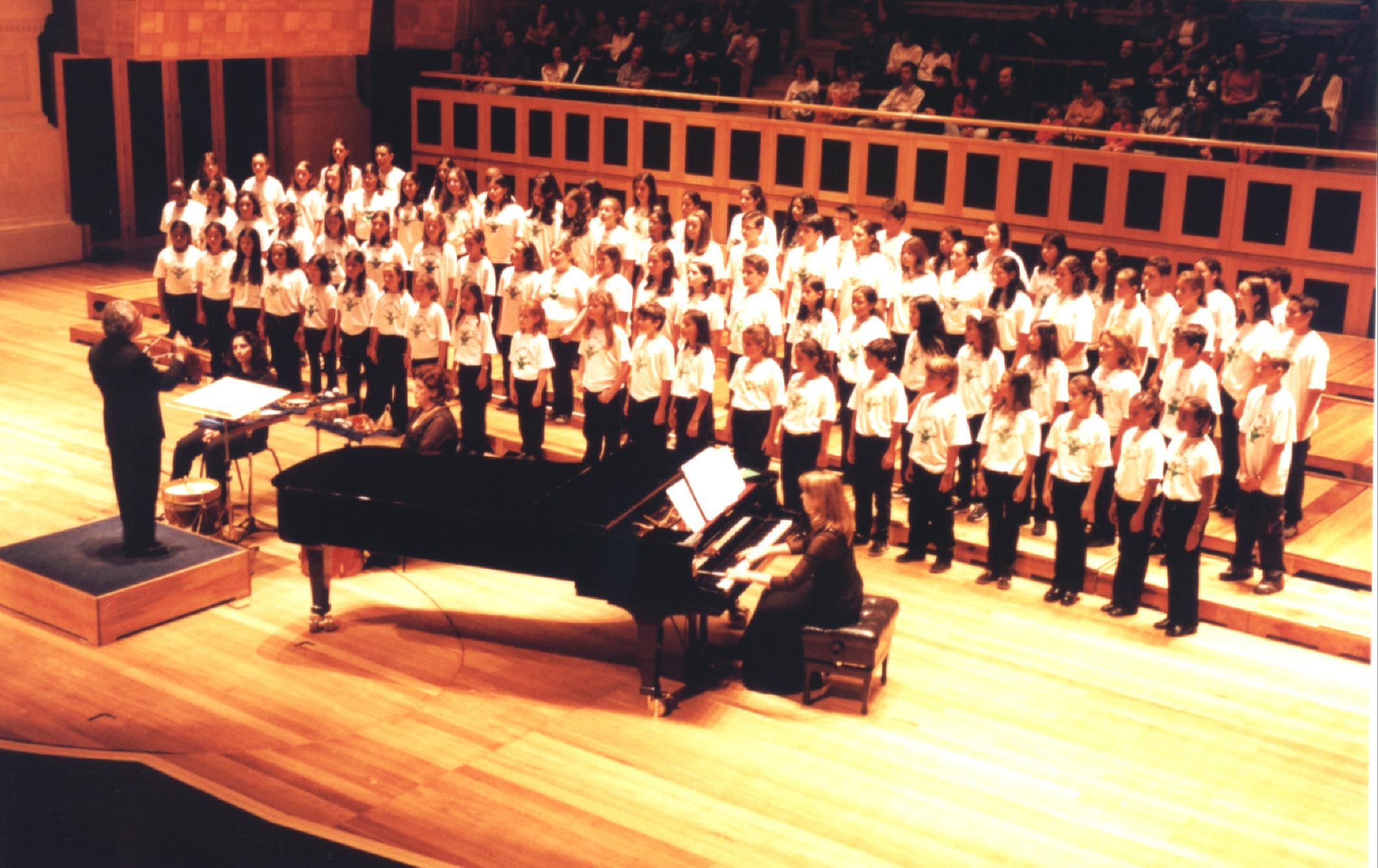 2002 22 Corais 450 coralistas Abertura: ” Vozes da ARCI- Associação de Regentes de Corais Infantis – Maestro Elias Moreira da Silva Convidado: Maestro Henry Leck EUA Pianista: Tania Bertassoli Sala São Paulo/SP Público: 1.500 pessoas